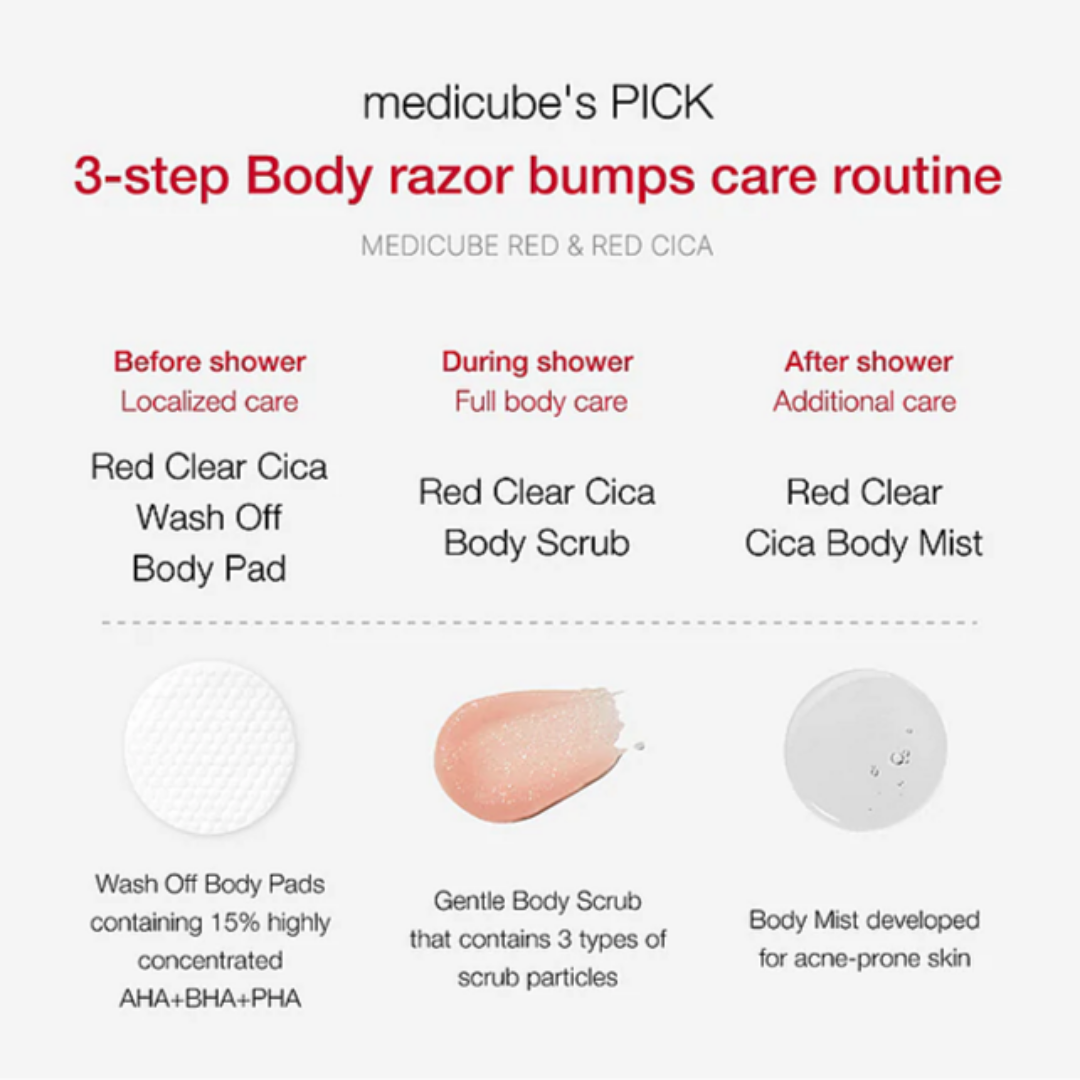 Item name : (Medicube) Red Clear Cica Wash Off Body Pad (50 pads / 200ml)