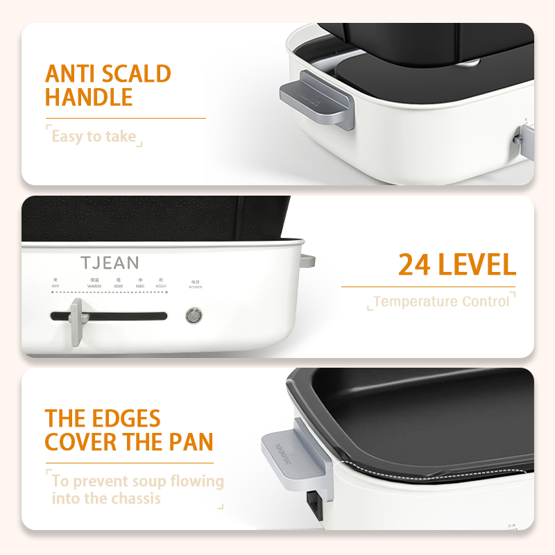 • Versatile Electric Hot Pot - TJean electric hot pot is multiple functional, not only suitable for daily family use but also convenient for gathering with friends. Whether it's sautéing, grilling, shabu-shabu, or steam-ing and hot pot, all dishes can be easily mastered at your fingertips. The unique shape with modern styl-ing adding luxury to your kitchen.