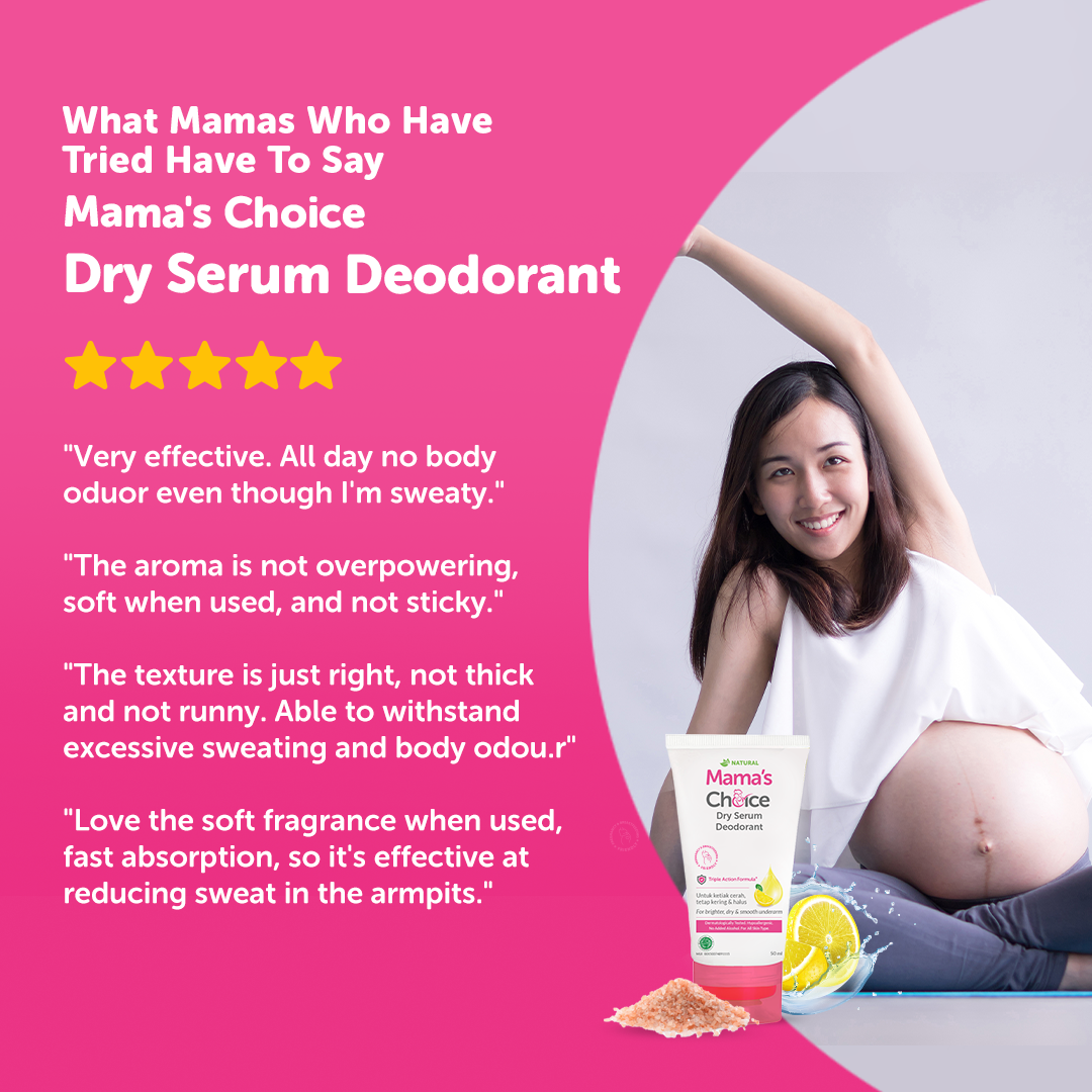 Did you know that normal deodorants are often formulated with aluminum, which may not be the best choice for pregnant or breastfeeding mamas? Mama’s Choice Dry Serum Deodorant brightens, nourishes, and helps control excessive sweating without all the harmful ingredients.