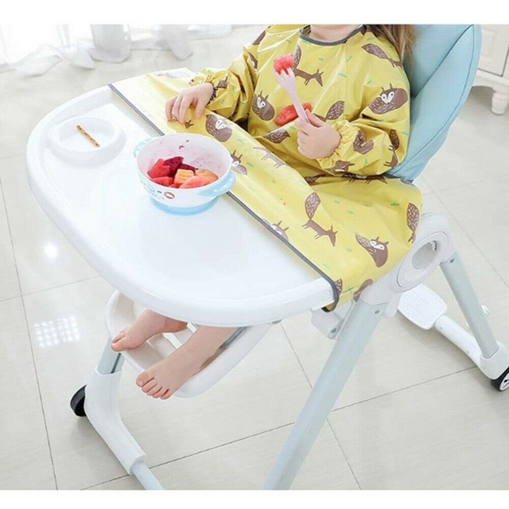1. Long Sleeve Waterproof Bib:The one-piece baby bib is easy to take care of and Long sleeves and apron body offers full coverage.Bib attaches to highchair trays to keep food off babys clothes and floor. and the integrated design of the baby bib and table cover can effectively prevent food from falling into the gap between the baby and the dining table. Fast and easy to use.