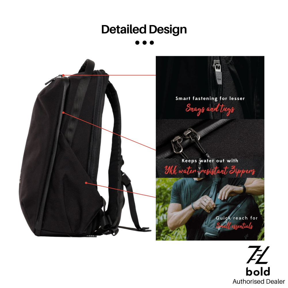 Ever had the thought that your bag has too much or too little space? Us too. Instead of switching multiple bags (and forgetting where you left your keys in), we've designed Pytho to adapt to your daily carry needs with its volume-changing design feature.