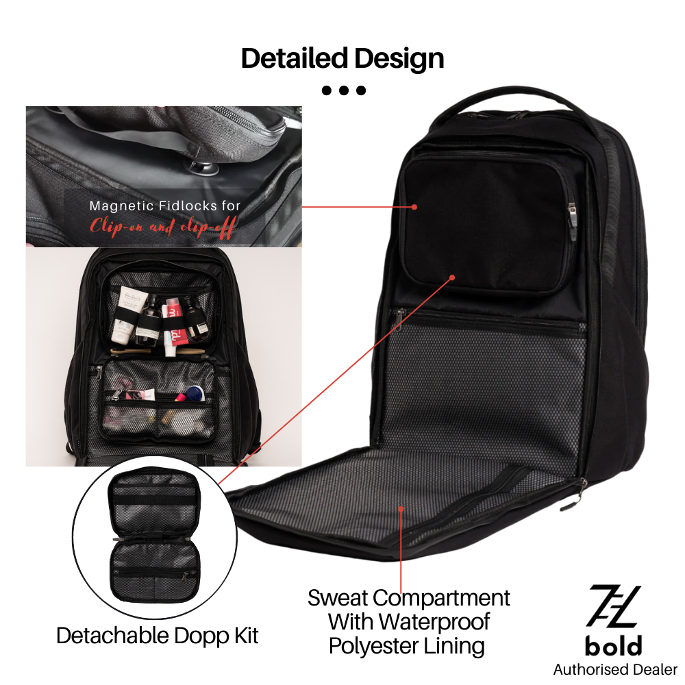 Pytho's dedicated shoe compartment is designed with a compressible flat-top design - which enables you to maximize the space regardless if you're hitting the gym.