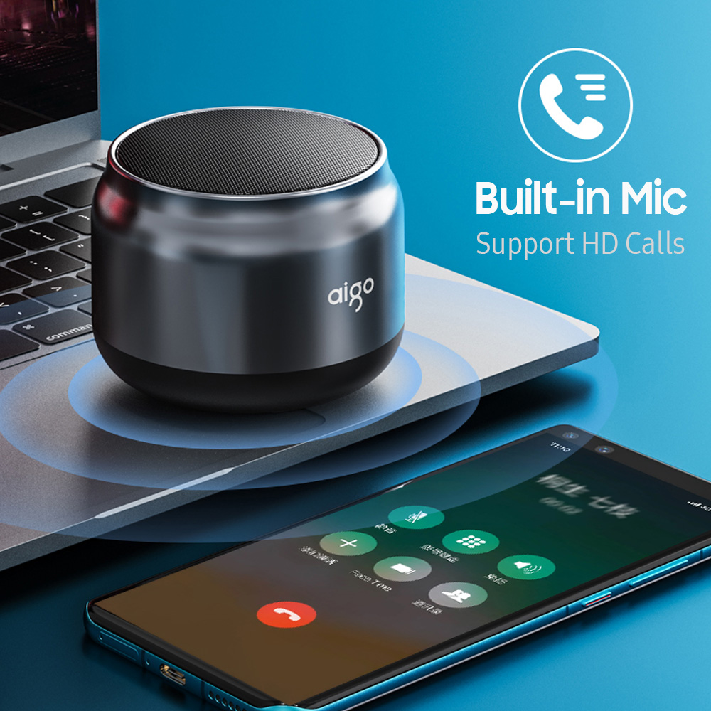 Item name: Aigo Wireless Speaker Color: Black Material: ABS BT version: BT 5.0 Wireless range: About 10meters (Obstacle-free) Battery capacity: 1200mAh Size: 79*79*62 mm Weight: about 240 g
