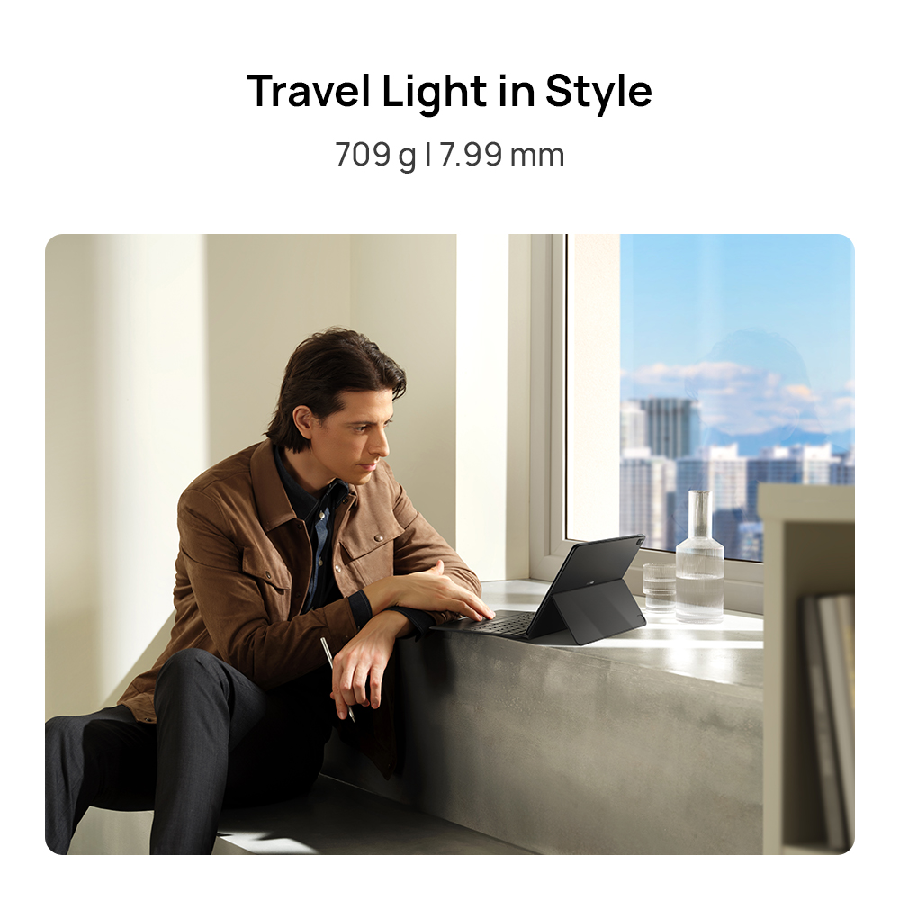 The MateBook E comes with an OLED screen with 2560 x 1600 resolution, P3 cinematic level color gamut, an ultra-high contrast ratio, and up to 600-nit brightness (400-nit in Normal mode). It features 5.6 mm ultra-narrow bezels and 90% screen-to-body ratio. It can be carried with ease thanks to its sleek design and has a thickness of just 7.99 mm.