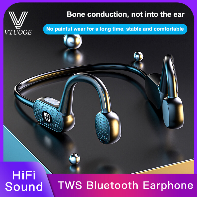 VTUOGE Bone Conduction Bluetooth Earphones headphone Wireless Headsets Sport running HiFi Noise Reduction Stereo Earbuds with Microphone with digital display For Xiaomi Huawei Redmi Oneplus Samsung oppo vivo sony