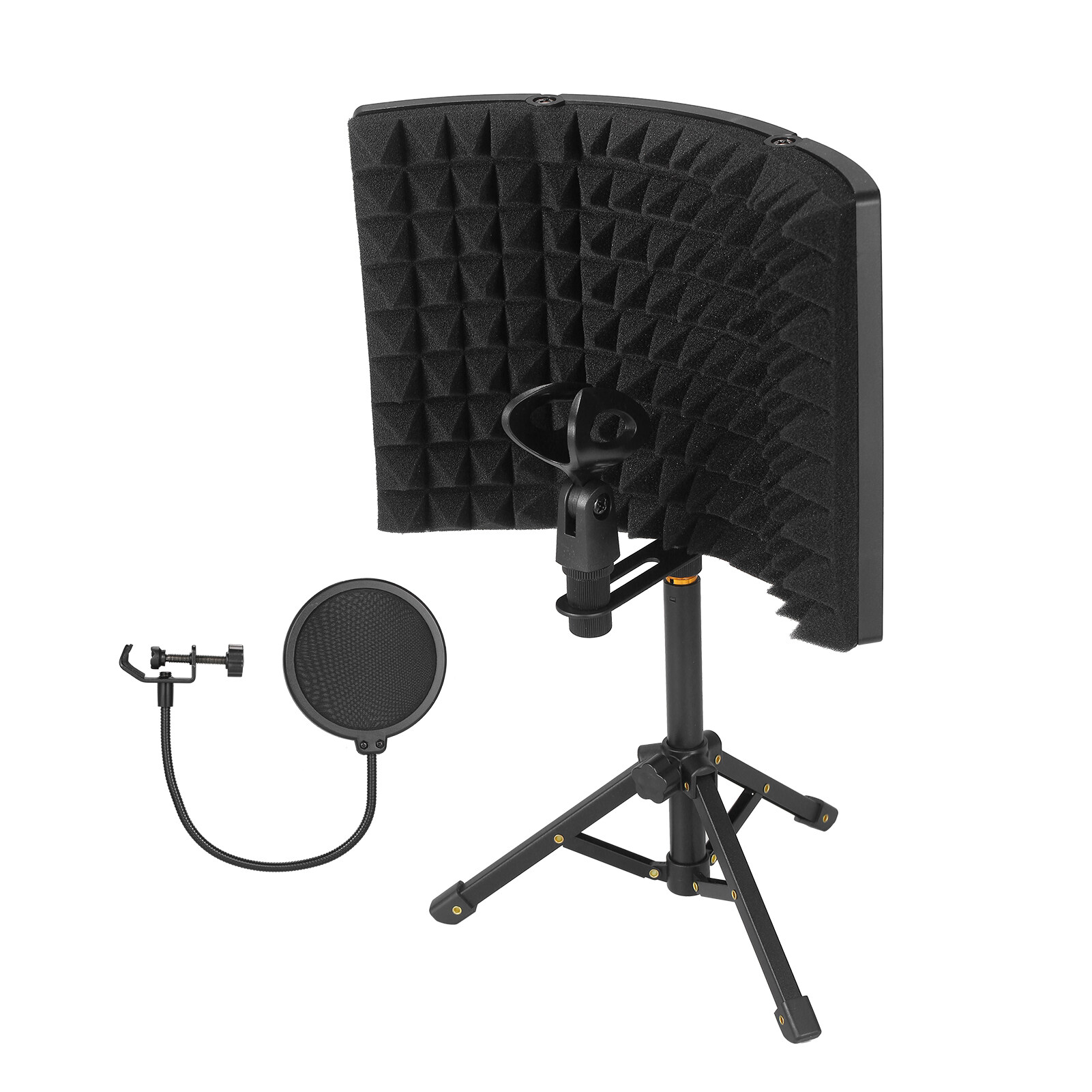 [Stable Tripod] The isolation screen can be installed on the desktop tripod for convenient use. And you can mount a microphone (NOT included) on the equipped microphone stand to use together.