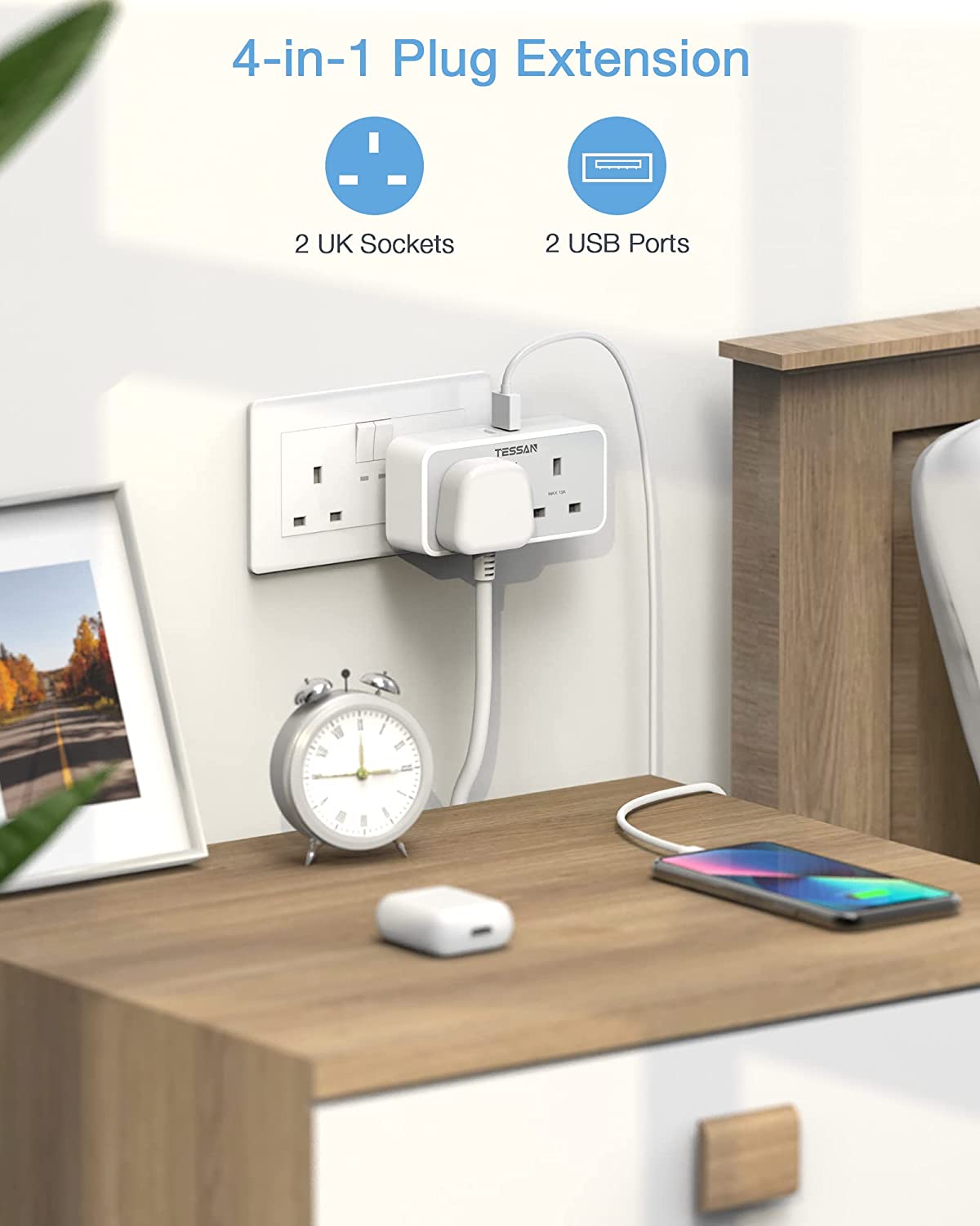 Easy to use - Just plug in any UK power socket, you can charge up to 5 devices at a time. You can pack it along with your other travel gears or using it in your home, office, bathroom, kitchen, bedroom, bedside or school