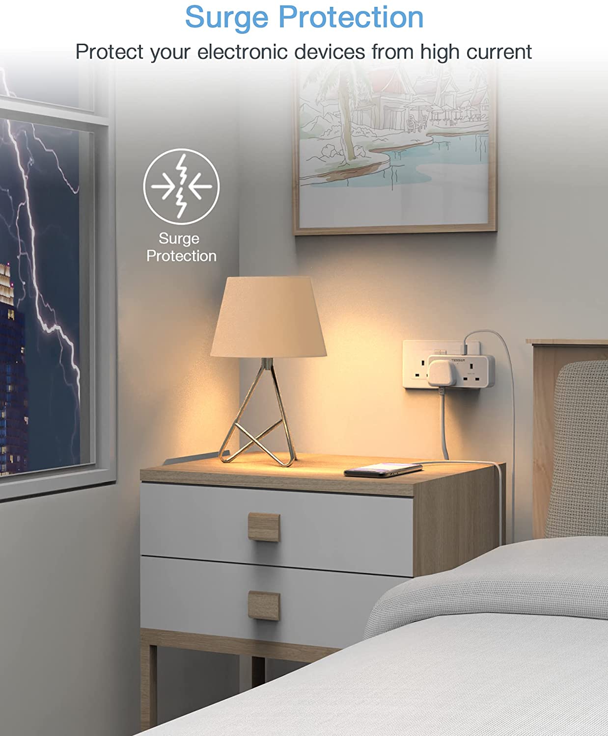 Space saving - This two plug extension has a compact design (11.3 x 10.2 x 2.6 cm), which create a charging station and will not block another socket in the same row. No more need to plug in a lot of power adapters