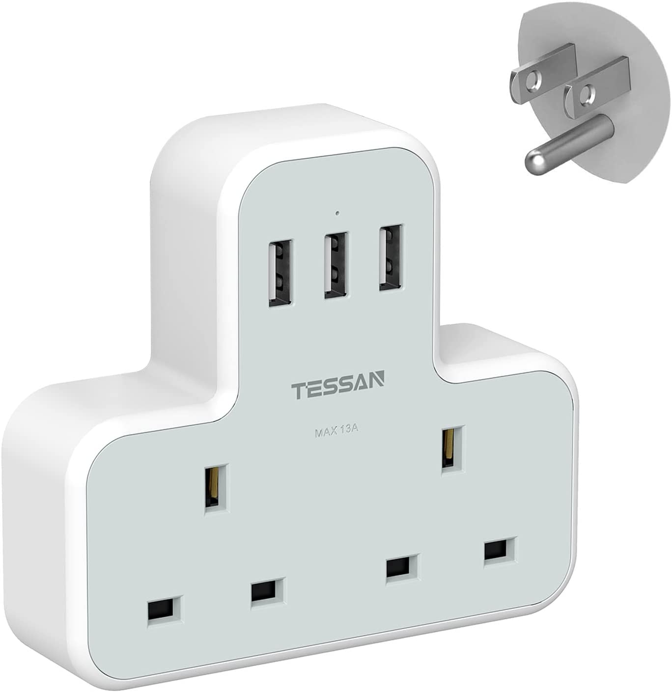 Multi plug extension - This outlet extender features 2 grounded AC outlets and 3 USB ports, ideal for charging indoors without bulky extension cords. One adaptor for five devices, Max capacity up to 3250W(250V/13A)