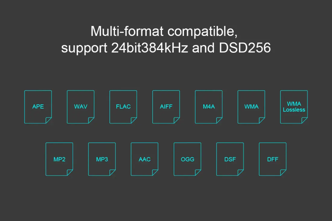 > Supports PCM 24-Bit/384kHz, DSD256.