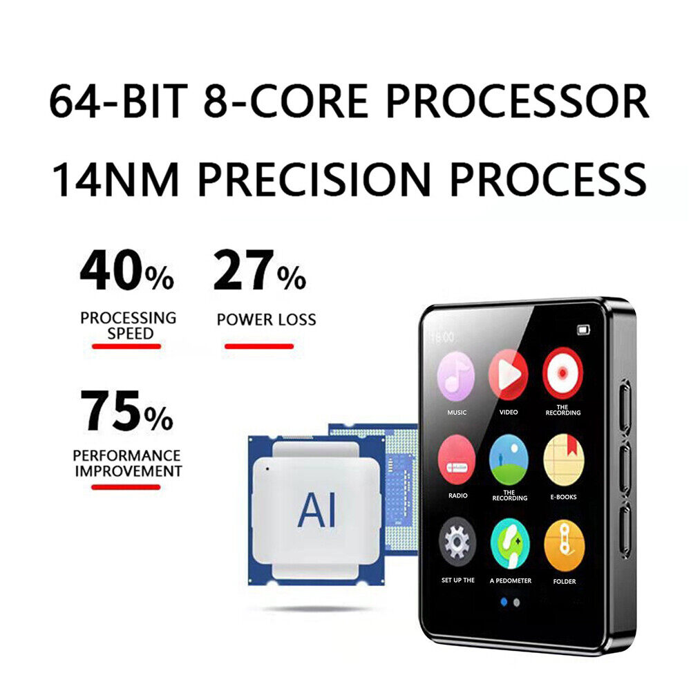 Specification:• Music playback: support mp3, wav and other playback• Recording support: FM microphone recording, the format supports mp3 wav• Picture Navigation Support: Navigation jpg bmp format• Video format support: mp4 format (need to be converted on the computer through the installation tool)• Advanced: Included (Recent Books, Tabs, Auto-Browse)• Memory: Maximum support 128G (excluding SD card)• System support: windowsxp/vista/window8• Recording format: mp3/wav• Video format: AMI/AVI• Support for reading document text• Language: English• Operation mode: button• Battery capacity: 300mah• Working hours: 8-10 hours• Screen size: 1.8 inches• Headphone jack: 3.5mm• Support Bluetooth transceiver•Bluetooth: v4.1 supports bidirectional transmission•Material: Aluminum Alloy•Colour: Black• Dimensions: 5.2x3.8x1cm