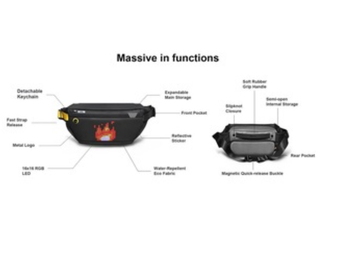 1. Four-layer storage design inside and outside 2. Waterproof (splashed raindrops)IP67 3. Connect to the APP to experience the exclusive creationPixoo-Slingbag is a stylish sling that suit your taste, yet verstile for for the urban daily life. It features a built-in LED screen and a mobile APP that lets you draw animation, display favorite logos, and communicate with others on your sling.so Sling bag is made of sturdy and durable polyester, water repellent. Lightweight, versatile, strong and sturdy rucksack. The lining is wear-resistant polyester and the colour will not fade• Create any pixel art animationeasily via the Divoom mobile application, or you can convert GIF to display. You can also type in the message and display it on your Sling Bag. Best of all, you can search your desired design from the a massive online gallery, and interact with other pixel art fans around the world.• 16x16 led screenProgrammable Pixel Art Led Display,you can Create your own pixel art, or pick a favorite one from the online gallery,also Team Logo,Memes,and Emoji,display anything you like on this stylish sling!• Pixoo sling bag is compatible with our remote controlwhere it will transform the sling into an indicator for the following traffic. You can also program different images and action to the remote buttons. Say good bye to the old school v-shape insert buckle. The manetic buckle is so easy to operate, and strong enough to hold your precioious cargos. Clip on, and clip off; you're good to go.The flexible strap of this chest bag can be adjusted,fit for normal size and plus size. A sling backpack is suitable for men, women even so cute for kids.• Lightweight Traveler & Sufficient CapacityThis Sling bag has three pockets: two at the front and one at the back. The front zipper bag can hold small objects for easy access. The main bag can hold mobile phone, wallet, charging treasure and so on. Finally, the back zipper bag is safe for mobile phone, cash and other valuables.Pixoo Sling bag offers different compartments to fit all your daily gears. Time to enjoy your journe