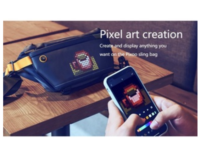 1. Four-layer storage design inside and outside 2. Waterproof (splashed raindrops)IP67 3. Connect to the APP to experience the exclusive creationPixoo-Slingbag is a stylish sling that suit your taste, yet verstile for for the urban daily life. It features a built-in LED screen and a mobile APP that lets you draw animation, display favorite logos, and communicate with others on your sling.so Sling bag is made of sturdy and durable polyester, water repellent. Lightweight, versatile, strong and sturdy rucksack. The lining is wear-resistant polyester and the colour will not fade• Create any pixel art animationeasily via the Divoom mobile application, or you can convert GIF to display. You can also type in the message and display it on your Sling Bag. Best of all, you can search your desired design from the a massive online gallery, and interact with other pixel art fans around the world.• 16x16 led screenProgrammable Pixel Art Led Display,you can Create your own pixel art, or pick a favorite one from the online gallery,also Team Logo,Memes,and Emoji,display anything you like on this stylish sling!• Pixoo sling bag is compatible with our remote controlwhere it will transform the sling into an indicator for the following traffic. You can also program different images and action to the remote buttons. Say good bye to the old school v-shape insert buckle. The manetic buckle is so easy to operate, and strong enough to hold your precioious cargos. Clip on, and clip off; you're good to go.The flexible strap of this chest bag can be adjusted,fit for normal size and plus size. A sling backpack is suitable for men, women even so cute for kids.• Lightweight Traveler & Sufficient CapacityThis Sling bag has three pockets: two at the front and one at the back. The front zipper bag can hold small objects for easy access. The main bag can hold mobile phone, wallet, charging treasure and so on. Finally, the back zipper bag is safe for mobile phone, cash and other valuables.Pixoo Sling bag offers different compartments to fit all your daily gears. Time to enjoy your journe