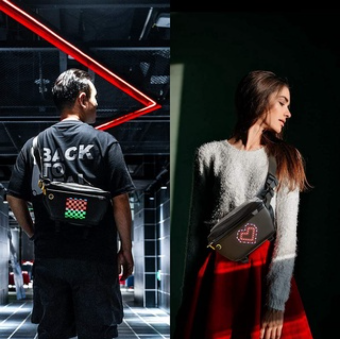 1. Four-layer storage design inside and outside 2. Waterproof (splashed raindrops)IP67 3. Connect to the APP to experience the exclusive creationPixoo-Slingbag is a stylish sling that suit your taste, yet verstile for for the urban daily life. It features a built-in LED screen and a mobile APP that lets you draw animation, display favorite logos, and communicate with others on your sling.so Sling bag is made of sturdy and durable polyester, water repellent. Lightweight, versatile, strong and sturdy rucksack. The lining is wear-resistant polyester and the colour will not fade• Create any pixel art animationeasily via the Divoom mobile application, or you can convert GIF to display. You can also type in the message and display it on your Sling Bag. Best of all, you can search your desired design from the a massive online gallery, and interact with other pixel art fans around the world.• 16x16 led screenProgrammable Pixel Art Led Display,you can Create your own pixel art, or pick a favorite one from the online gallery,also Team Logo,Memes,and Emoji,display anything you like on this stylish sling!• Pixoo sling bag is compatible with our remote controlwhere it will transform the sling into an indicator for the following traffic. You can also program different images and action to the remote buttons. Say good bye to the old school v-shape insert buckle. The manetic buckle is so easy to operate, and strong enough to hold your precioious cargos. Clip on, and clip off; you're good to go.The flexible strap of this chest bag can be adjusted,fit for normal size and plus size. A sling backpack is suitable for men, women even so cute for kids.• Lightweight Traveler & Sufficient CapacityThis Sling bag has three pockets: two at the front and one at the back. The front zipper bag can hold small objects for easy access. The main bag can hold mobile phone, wallet, charging treasure and so on. Finally, the back zipper bag is safe for mobile phone, cash and other valuables.Pixoo Sling bag offers different compartments to fit all your daily gears. Time to enjoy your journe