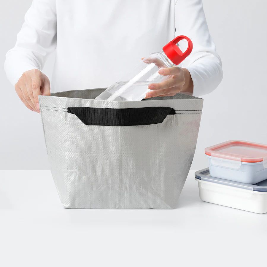 A colorful, practical little carrier bag to bring when you go on a picnic, are taking a lunch box to work or carrying small things to school.