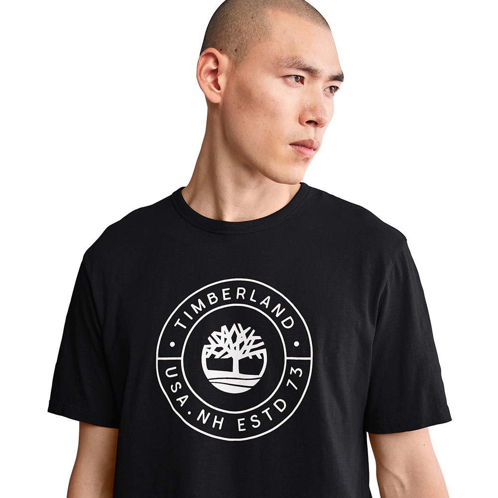 Featuring an eye-catching graphic on the chest, this men's tee is crafted with a rugged-looking but easy and comfortable slub fabric that's 100% organically grown.