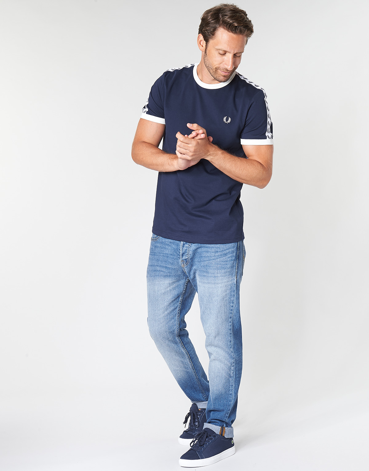 Thanks to the short sleeves and classic look, this Fred Perry t-shirt is perfect for your wardrobe! This shirt is made of a blue cotton (100%) fabric for a stylish look. So versatile, it's our favourite t-shirt this season.