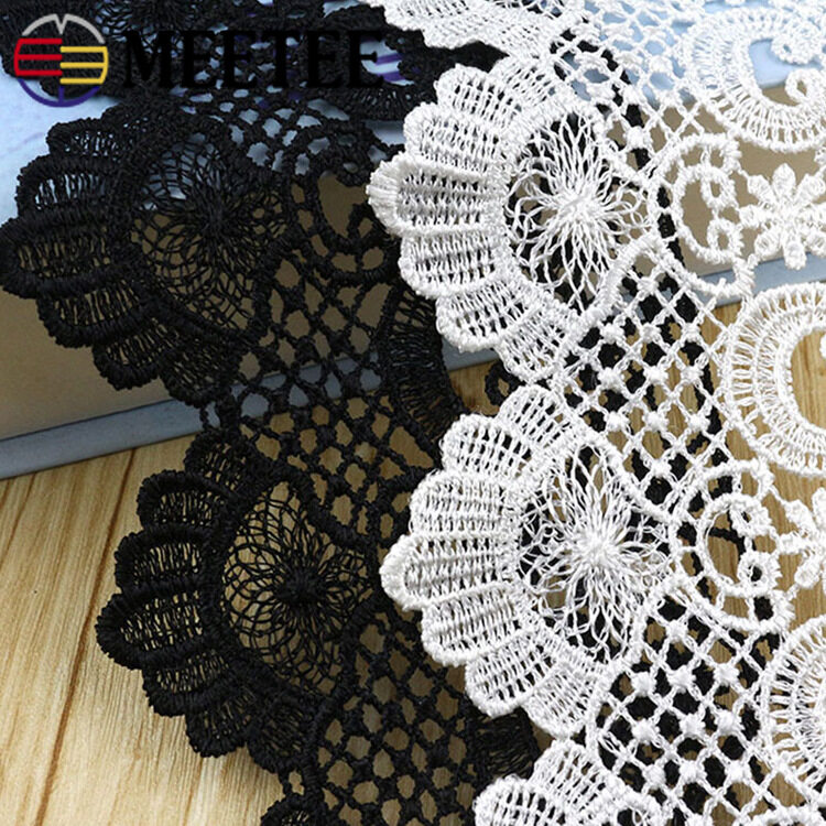 Name:White Black Embroidery Tulle Lace Trim Ribbon