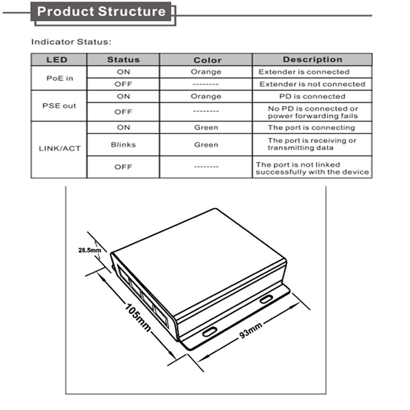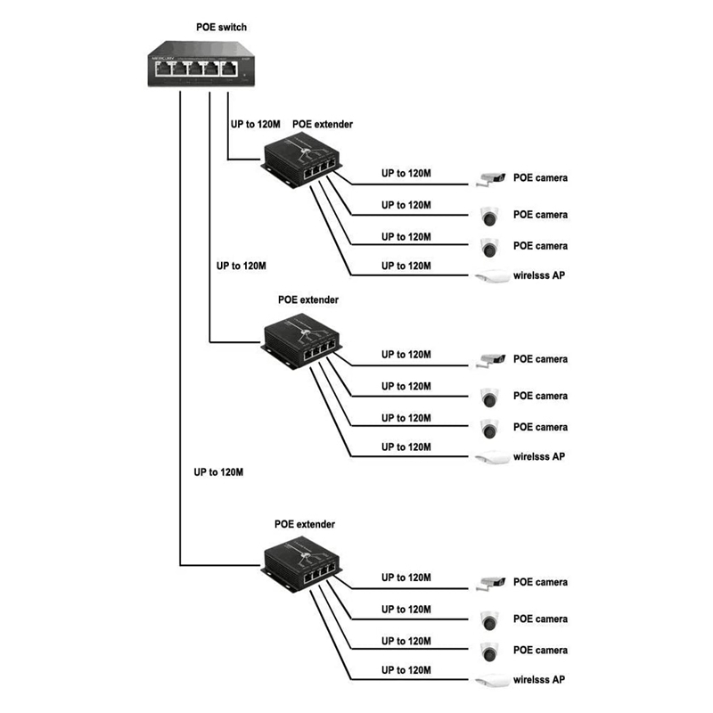10/100M Supported;Extender the range of PoE an additional 120 meters;