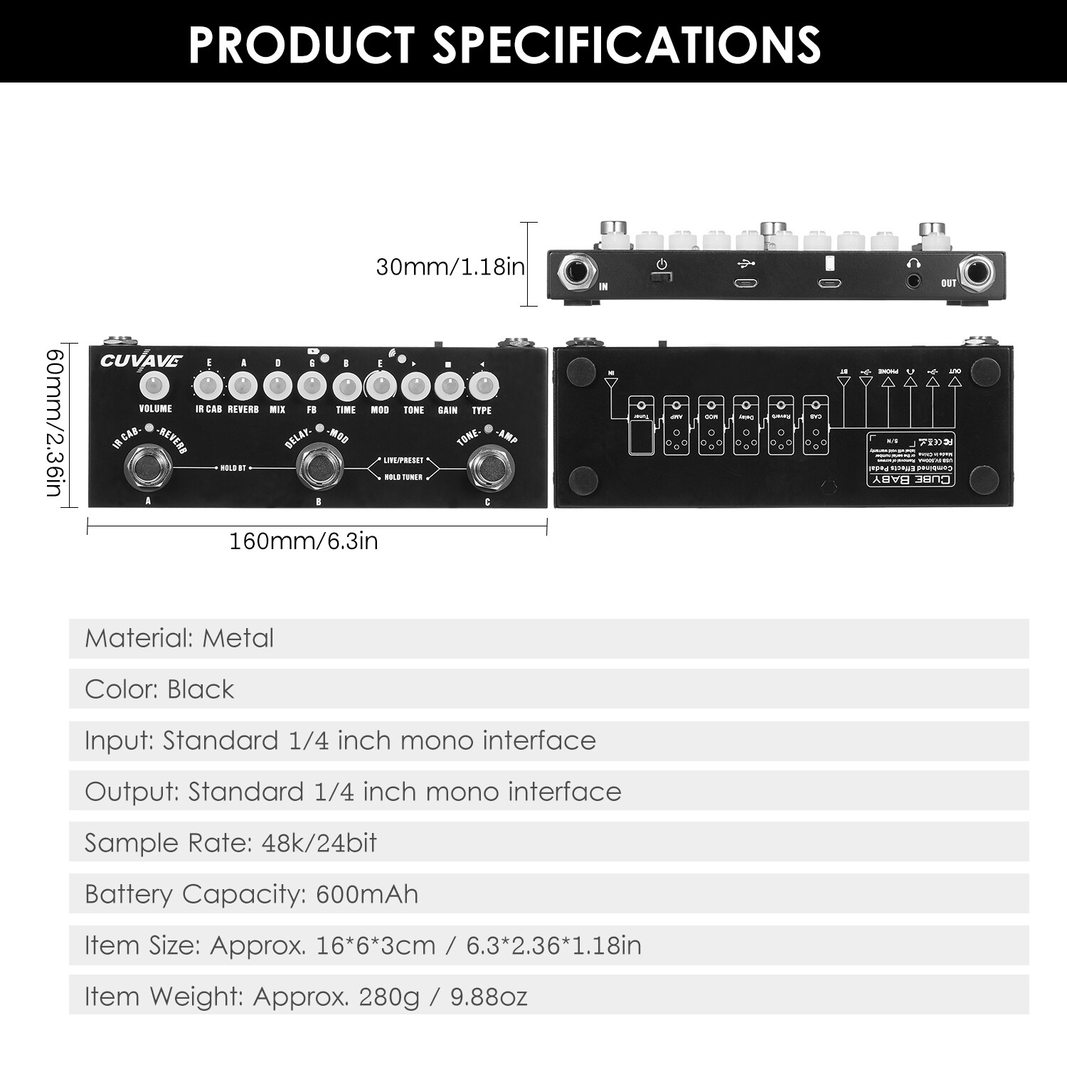 [Multifunctional Effect Pedal] Contained 9 classic IR, 2 modulation effects(chorus, phase shift), 1 tape delay, 1 reverb effect, 8 classic IR box models and a tuner.