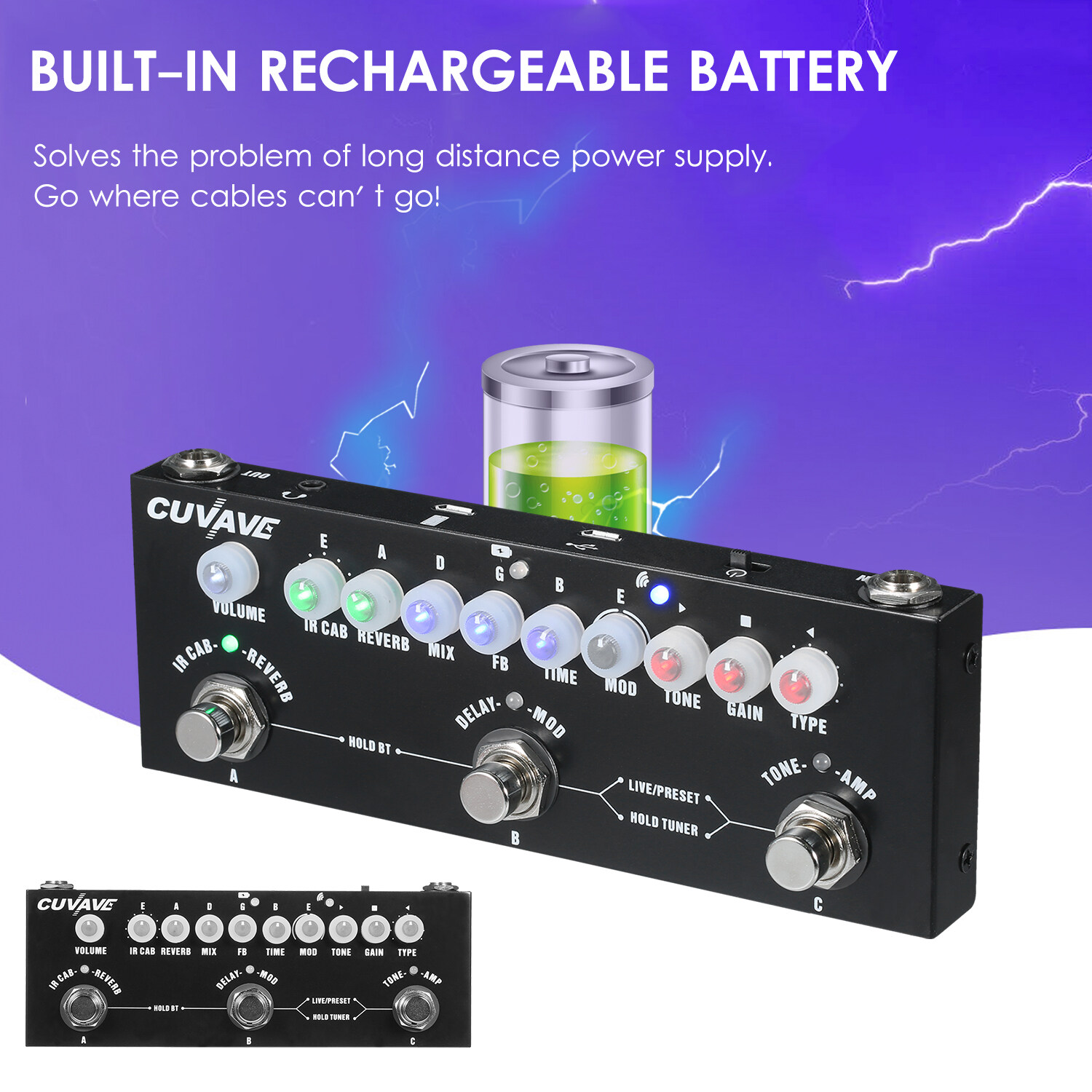 [Multifunctional Effect Pedal] Contained 9 classic IR, 2 modulation effects(chorus, phase shift), 1 tape delay, 1 reverb effect, 8 classic IR box models and a tuner.