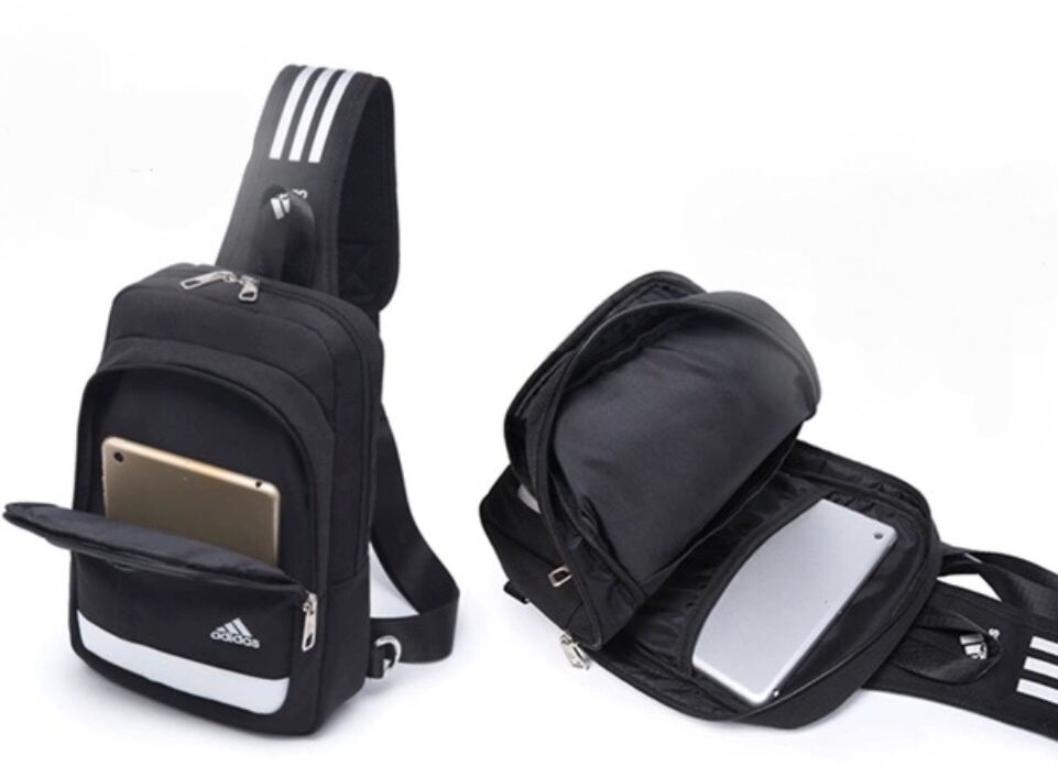 MODEL B - 100% Original with Adidas Packaging & Tag •Measurements: 34 H x20 L x7cm WCapacity: 10L •Adjustable waist strap with buckle closure •X1 Inner Tablet / Handphone Slotsx1 Front Main compartment zip Inner slots organiserx1 Back ZipMaterial: 60% polyester / 40% Recycled Polyester