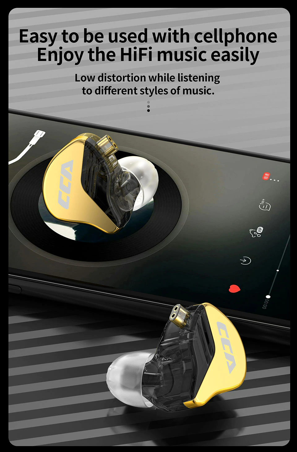 Meet the CCA CRA+ an upgraded version of the popular CCA CRA, offering an extraordinary performance across the frequency spectrum. This new IEM embeds a single dynamic driver with an ultra-thin polymer diaphragm which delivers high-frequency extension and detailed sound. It also has a 0.12mm magnetic gap and a 0.35mm diameter loop, allowing a stable driver performance. CCA CRA+ features an improved tuning, with a better bass response thanks to the acoustic tuning. The faceplate of this IEM is made with zinc alloy material and golden color, giving it a vibrant and unique appearance. Apart from the unique design and sound quality, the CCA CRA+ also offers a 2-Pin cable with an HD microphone and in-line controls to ensure easy connectivity and communication.