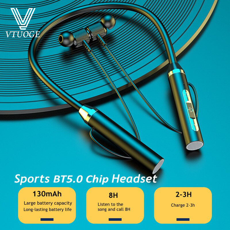 VTUOGE Magnetic Wireless Neckband Earbuds Bluetooth 5.0 Earphone HiFi Music Stereo Long Life Battery Sports Waterproof headphone in-ear Headset with Mic for Xiaomi