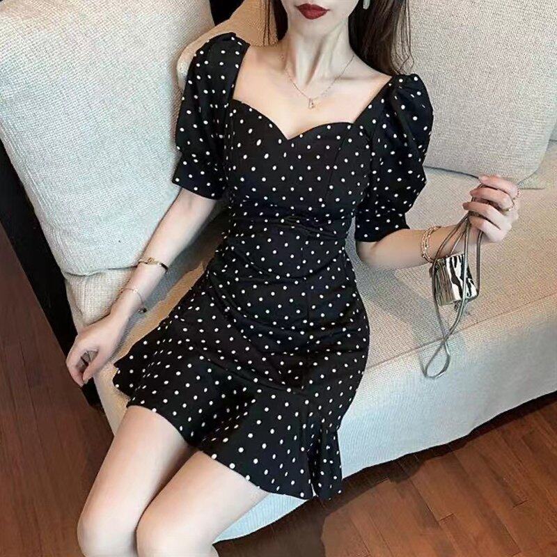 INWPLLR Summer Dating Mini Dress Women Fashionable Square Collar Puff Sleeve Dresses Fairy Tie Dye Female Dress