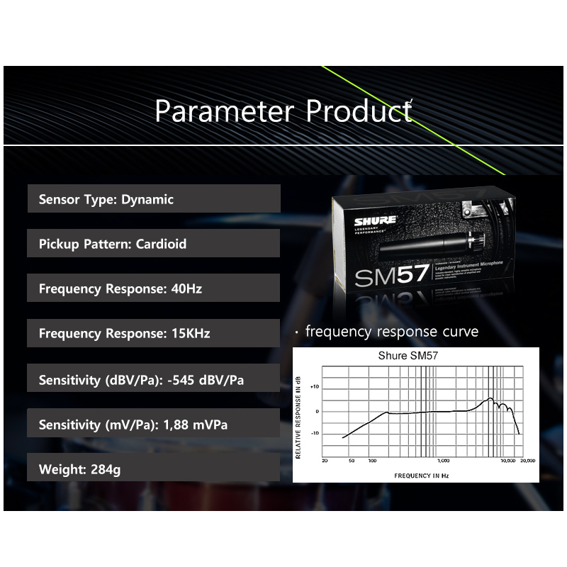 Professional quality mic ideal for lead and backup vocal performance Pro-quality versatile microphone SM57 Microphone 15 ft. (4.57m) XLR-XLR Cable Zipper pouch