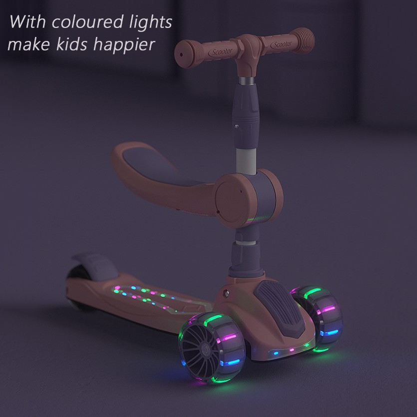 OneTwoFit Kids Adjustable Light Scooter With Seat Music Colored Children Scooters
