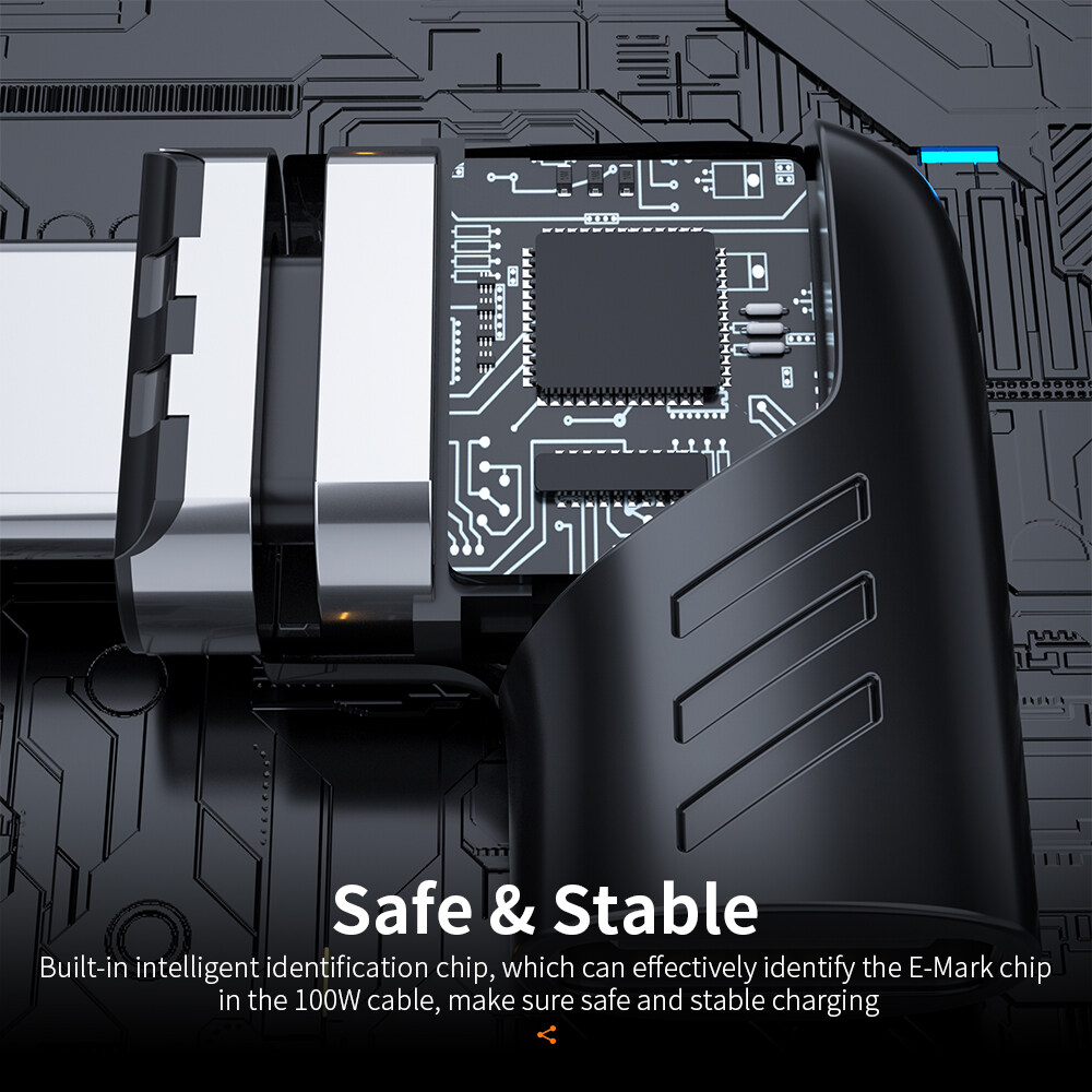 6. The built-in identification chip can effectively identify the E-MARK chip in the 100 data line, thus ensuring the maximum power 100W output