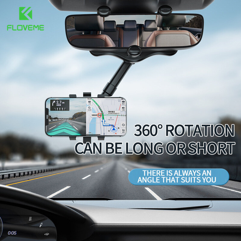 FLOVEME New Multifunctional Car Phone Holder for iP 13 Pro Max 12 Pro Max Samsung S22 Ultra S21 Ultra Car Rearview Mirror Mount Holder for Huawei Xiaomi OPPO Vivo AR Navigation Car 360° Rotating Retractable Car Phone Bracket