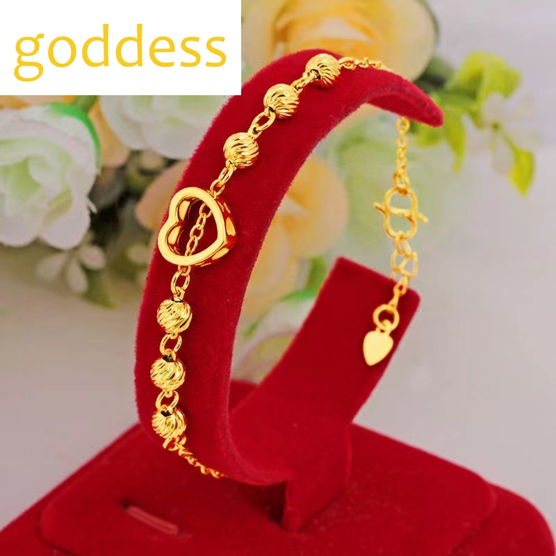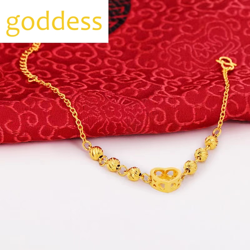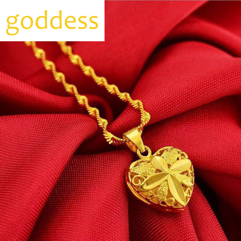 Pure Gold 18k Pawnable Saudi Legit Original Not Fading Necklace for Women Peach Heart Heart-shaped Pendant Birthday Present Water Ripple Chain Good Luck Couple Necklace Girlfriend Gift Fasion Jewellery Necklace and Free Round Luck Bead Love Bracelet Set