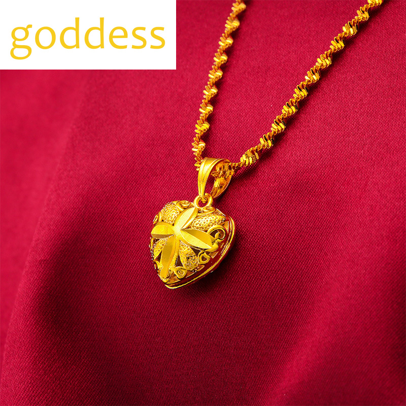 Pure Gold 18k Pawnable Saudi Legit Original Not Fading Necklace for Women Peach Heart Heart-shaped Pendant Birthday Present Water Ripple Chain Good Luck Couple Necklace Girlfriend Gift Fasion Jewellery Necklace and Free Round Luck Bead Love Bracelet Set