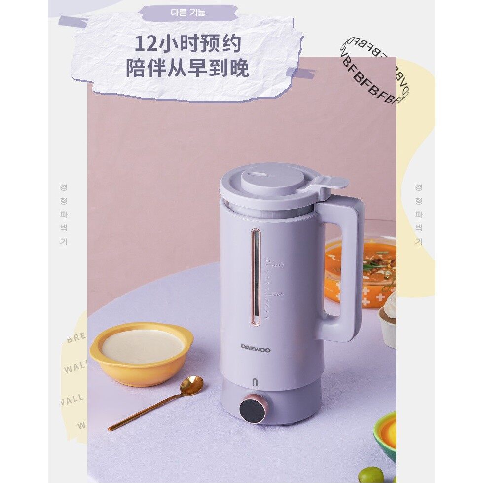 Daewoo大宇 迷你豆浆破壁机&养生壶 20大功能破壁功能:1️⃣豆浆 2️⃣辅食 3️⃣五谷浆 4️⃣营养汤 5️⃣绵粥6️⃣玉米汁 7️⃣果汁 8️⃣ 奶昔 9️⃣ 预约 清洗养生壶功能:1️⃣ 煮沸除氯 2️⃣泡茶 3️⃣奶茶 4️⃣花茶 5️⃣调奶6️⃣养生汤 7️⃣虫草 8️⃣参茶 9️⃣灵芝 保温一般的迷你豆浆机只有5大功能,而大宇破壁机有10个功能,另加养生壶又有另外的10大功能~即是破壁机,又是养生壶,只要你喜欢随时都可以切换~一键搞定煮营养粥给宝宝吃,也可以制作新鲜豆浆,养生米糊也可以~可以当成果汁机,轻松弄出新鲜果汁也可以打出健康奶昔,帮你省下每个月的奶茶钱想要健康养生不是问题,一机在手帮你调理好身子‍️一键清洗,简单方便,简直是懒人的福音提供预约功能,让你睡醒就有早餐喝‍️方便携带,想要带去旅行都不是问题须注意事项:如煮豆浆,不能预先浸泡豆。如需浸泡豆,那么每一次煮,只能浸泡半勺的豆,以避免煮的过程中溢出。为什么选『大宇迷你破壁机』豆浆机?做好豆浆后,不需要过滤渣不需要泡黄豆,而且干豆湿豆 都可以直接放进豆浆机可以12个小时前提早设置时间,不用早起身准备只需25分钟,暖暖的热豆浆就好了小巧轻便且不占位置,设计时尚拥有安全设定。如果盖子没有盖好, 豆浆机会自动切断电源内部采用的是高硼硅玻璃内胆,外面是包覆式外壳,安全防烫按“清洗”键,就自动清洗,省工省时间为了确保产品的质量 和顾客的满意度,每一个产品在寄出之前,我们都会亲自开箱验货,以确保产品的质量!免费 清洁刷 + 量杯 + 说明书 + Malaysia Adapter买豆浆机,我们再免费 送你 清洁刷 + 量杯 +3-pin 插座 (Adapter)产品包装包含主机 + 破壁机+养生杯+电源线(包括插头转换器)+量杯+清洁刷 + 产品说明书豆浆机性能产品尺寸: 16.8cm x 14cm x 29.1cm产品容量:600ml电压:220V加热功率:500W搅拌功率:120W养生杯功率: 500W电机功率:120W电机转速: 20000转/分钟加热方式:底部加热整机净重:1.8KG适用人数:2-3人常见问题1️⃣ 请问需要过滤的吗?答:煮出来的豆浆相当绵密,有一些比较细的渣,可以自行使用比较细密的过滤网过滤几遍。有些人觉得不过滤也行,喜爱有渣的味道。有些觉得不过滤会会觉得豆浆有点粗,甚至味道怪怪。这都看个人口味和选择。过滤完后,味道和外面卖的无差别。也可以自行斟酌加不加糖。(介意勿下单)2️⃣为什么说是免过滤,但还是要过滤?答:免过滤指的并不是完全不过滤(不过滤也能喝),只是煮出来的豆浆还是会有带点比较细少的渣,自行过滤后,即可饮用,味道甚佳。若嫌麻烦过滤的话,倒出豆浆时,上面的会不带渣,底部才会有渣,所以倒出时,可稍微放慢速度倒出,底部的可丢弃不喝。3️⃣煮豆浆时,能不能放糖?答: 请切勿放糖进豆浆机一起煮,这会导致糖焦并使豆浆机内部黏着烧焦的糖。请在煮好后才再加糖。️ 若个人操作问题导致机器故障,恕本店一概不负责。4️⃣请问干黄豆和湿黄豆的区别?答:干黄豆指的是没浸泡过的豆;湿黄豆则是浸泡过的豆。5️⃣:请问豆需不需要浸泡?答:不需要浸泡哦。如果需要浸泡,那么每一次煮,只能浸泡半勺的豆,以避免煮的过程中溢出。6️⃣:黄豆和水需要放多少比例?答:煮豆浆时,豆量和水量豆不能过多或过少,这会导致豆浆溢出或者机器无法开始进行操作。7️⃣:这豆浆机有多少容量(Liter)?答:每次可以做大约300-600ml豆浆。8️⃣:什么是 【一键清洗】功能?答:其中一个功能键是 “清洗”。很简单,倒水进去,挤一些洗碗液下去,按一下 “清洗键“ ,豆浆机内的 4叶立体刀 每分钟 旋转 27200次搅拌清水,帮你缩短清洗时间,省工省时间。️:【一键清洗】功能洗得干净吗?底部刀片和旁边会黏着食物吗?答:【一键清洗】可以帮你 缩短清洗时间,省工省时间。(个人经验) 但是,食物有时还是会黏在旁边/底部,就用 附送的清洗刷子去擦。刀片上擦不干净我就放一块白布下去,用筷子推,就干净了。️: 豆浆机操作时会很吵吗?噪音大吗?答:这款豆浆机操作时的噪音比传统的搅果汁机更小声,可是还是有声音的。大约75分贝。平时30-40dB是较为理想的安静环境;70dB会干扰谈话,传统搅、榨汁机是 89-105分贝之间。这款是75分贝。️: 豆浆机可以煮苹果、马铃薯浓汤 或者宝宝食物吗?需要另外再蒸才放进去豆浆机吗?答: 可以没问题,可以煮苹果、马铃薯浓汤 或者宝宝食物。 不需要另外再蒸, 直接放下去就行了。有任何问题,可以随时联络我们哦~