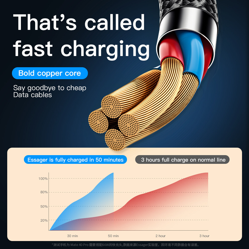 Product Name: Essager Quick one drag three data line 66W (M+T+L) 1.2m