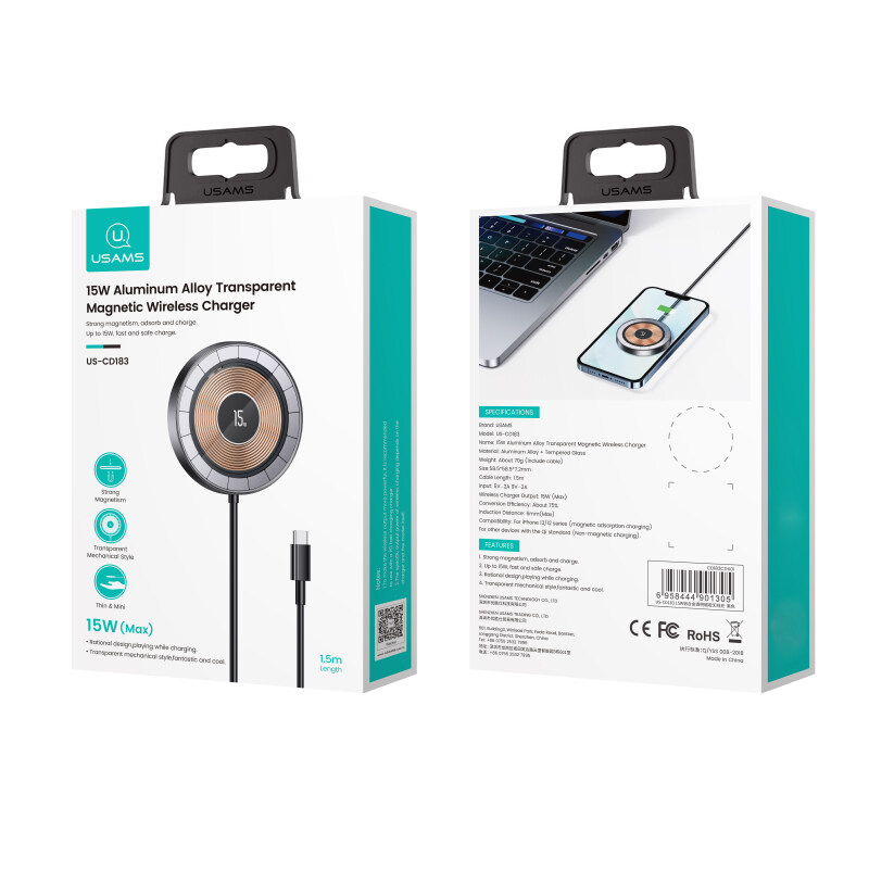 Name:15W Aluminum Alloy Transparent Magnetic Wireless Charger