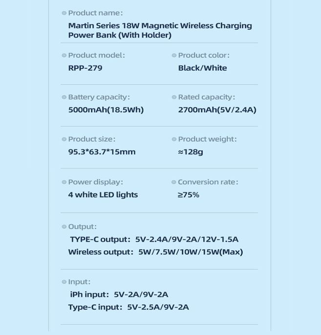 1 x Remax RPP-279 Wireless 5000mAh Power Bank
