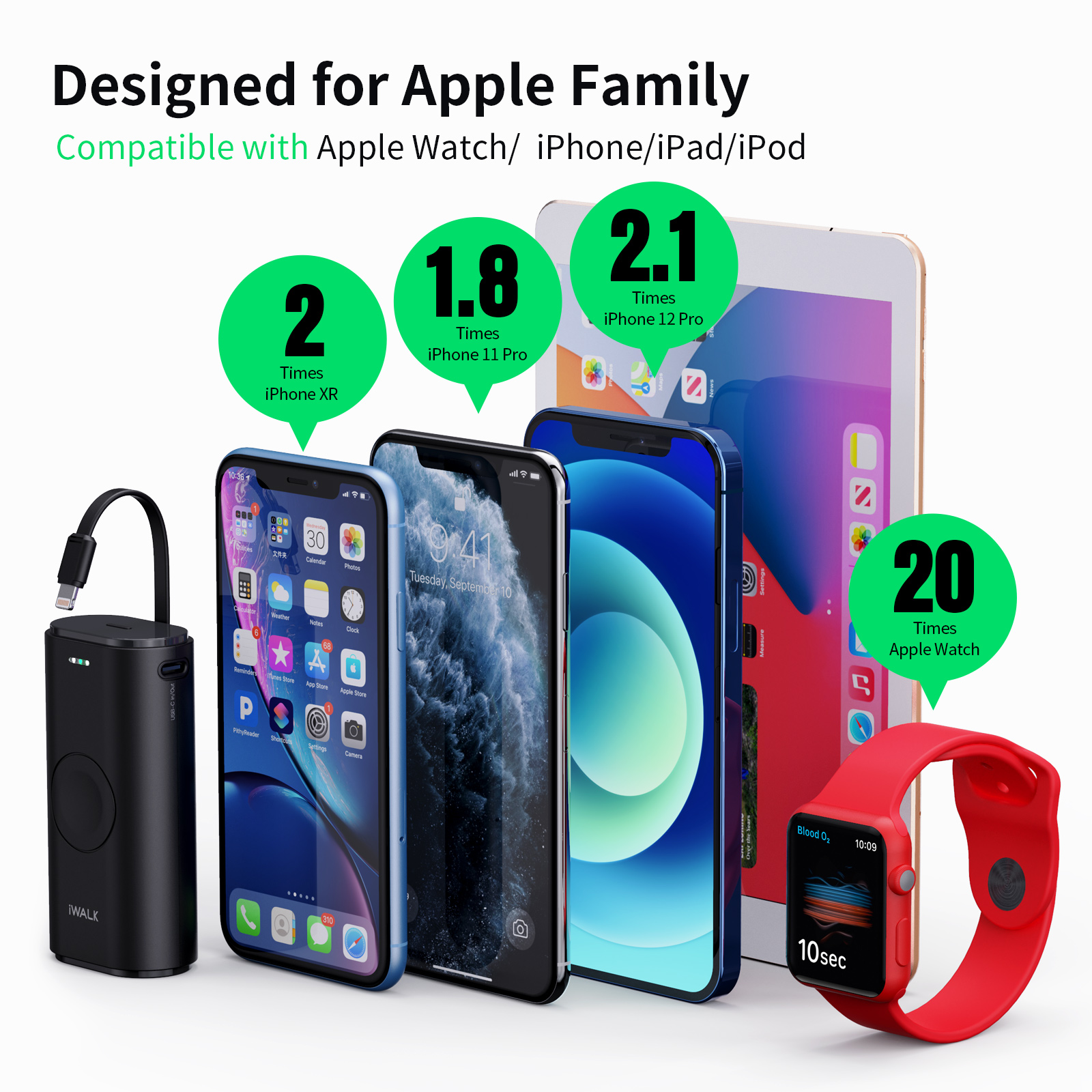 iWalk offers a more powerful charging solution for iPhone and Apple Watch when you want to travel for several days and do not wish to bring you full array of cables and charging blocks.