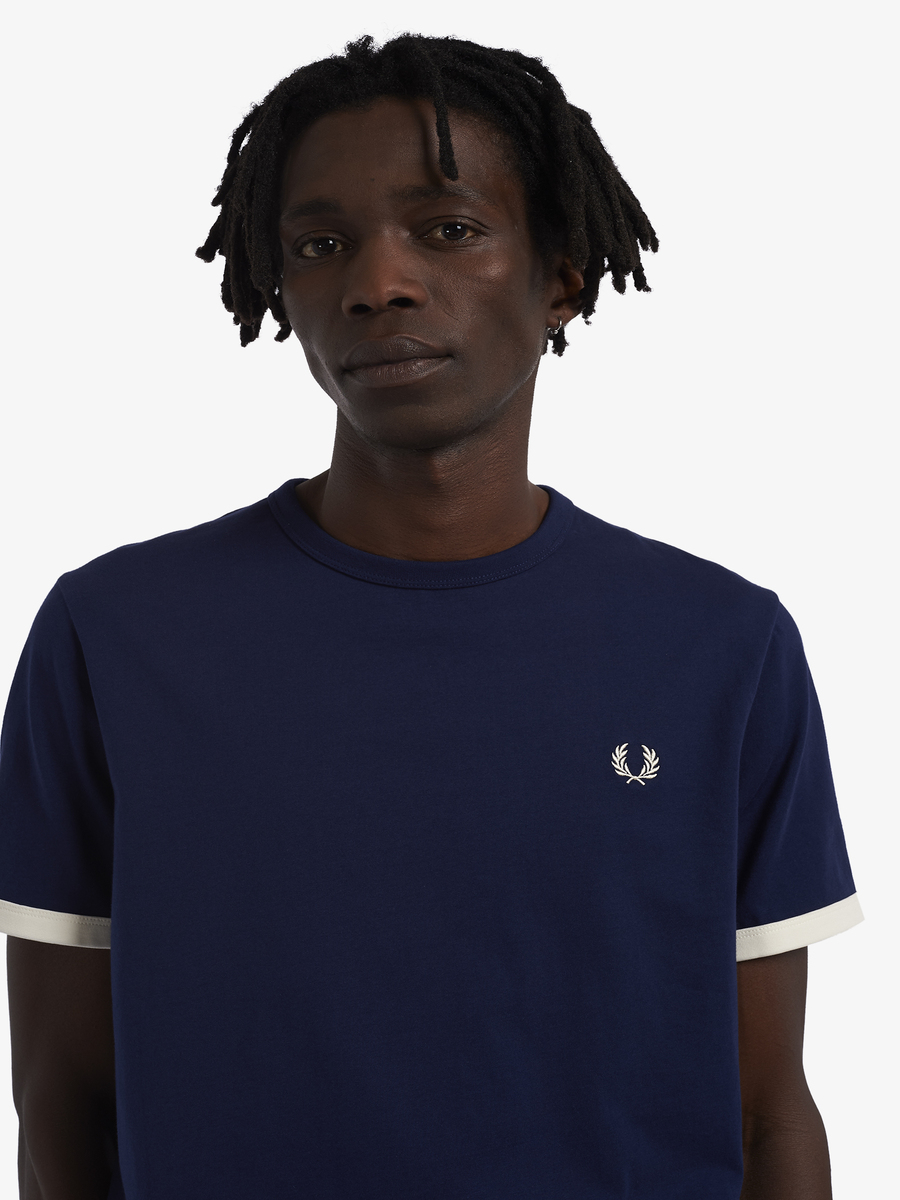 Cotton jersey / Regular fit / Rib neck and cuffOriginally worn as sports training gear, the ringer t-shirt was later adopted into the subcultural uniform.