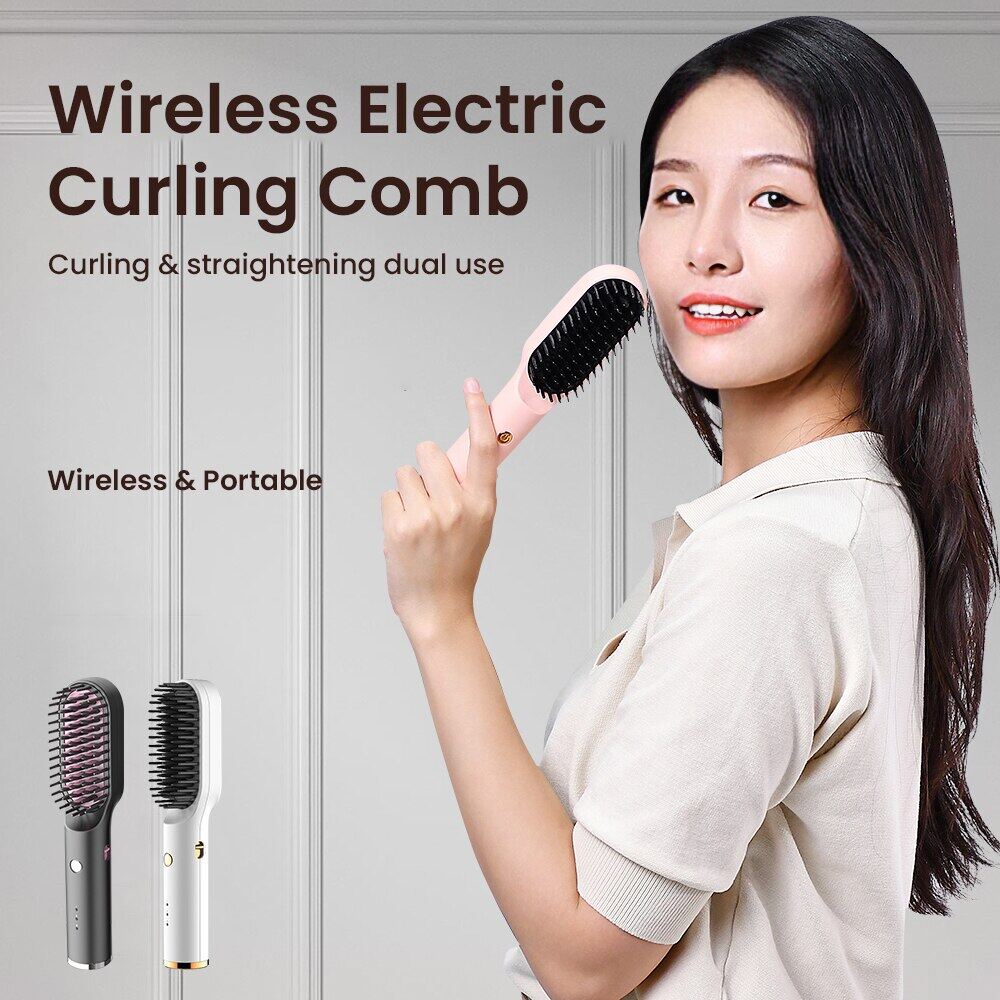 Cordless Straightener Hair Comb Brush Type C Rechargeable Wireless Anti Static Quick Heated Hair Straightening Styling Tools