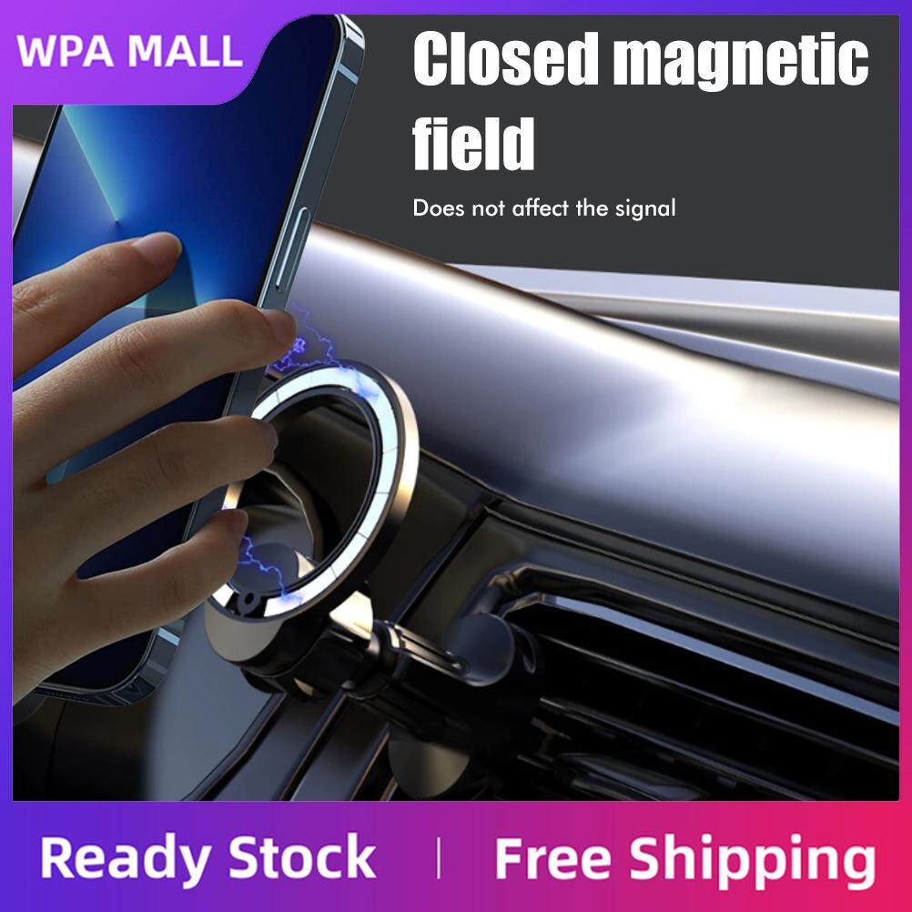 【Compatible for iPhone12 13】Perfectly aligned magnets attach to your compatible for iPhone, this car mount compatible for iPhone magsafe can work directly with your compatible for iPhone 13/12/mini/pro max without additional magnet rings. Just get close and your phone will automatically snap onto the ventilated car mount for your compatible for iPhone (it comes with a suction tab, works with other phones too) and enjoy the pleasure of holding your phone firmly! (Note: This car mount compatible for magsafe is not a charger!)