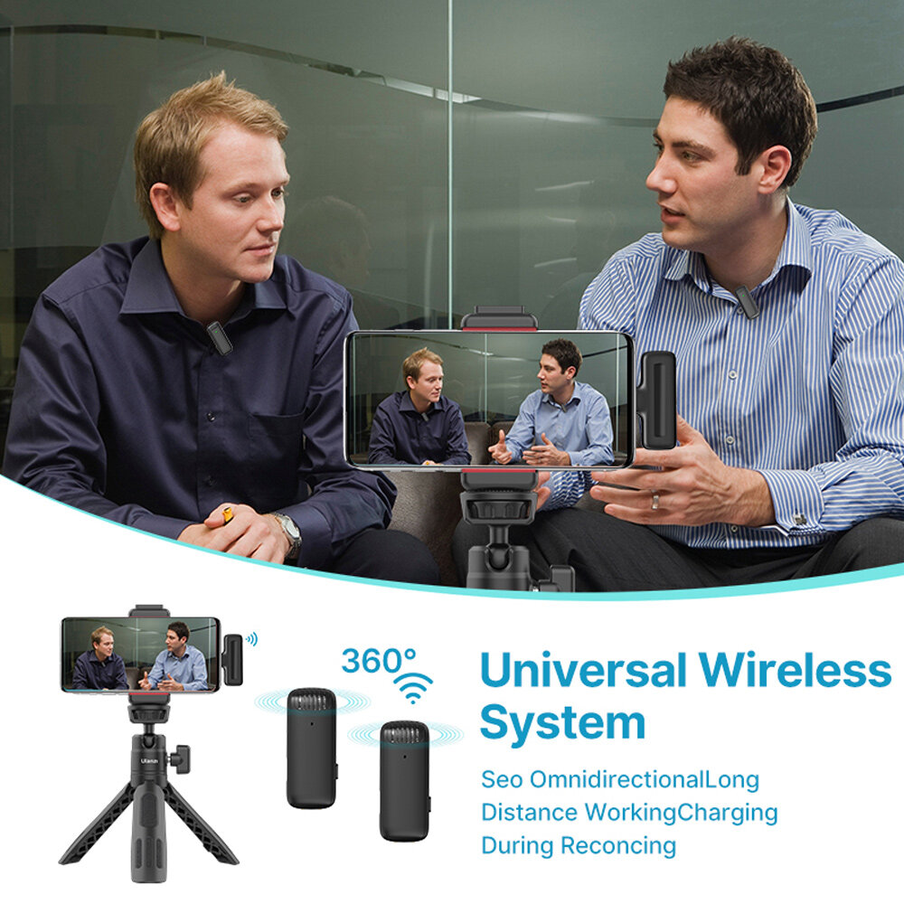 Including 1 receivers & 2 microphone transmitters, supports dual microphone simultaneous recording, plug-and-play, no APP needed, very suitable for phone vlog, live streaming, interview, online chatting, etc.