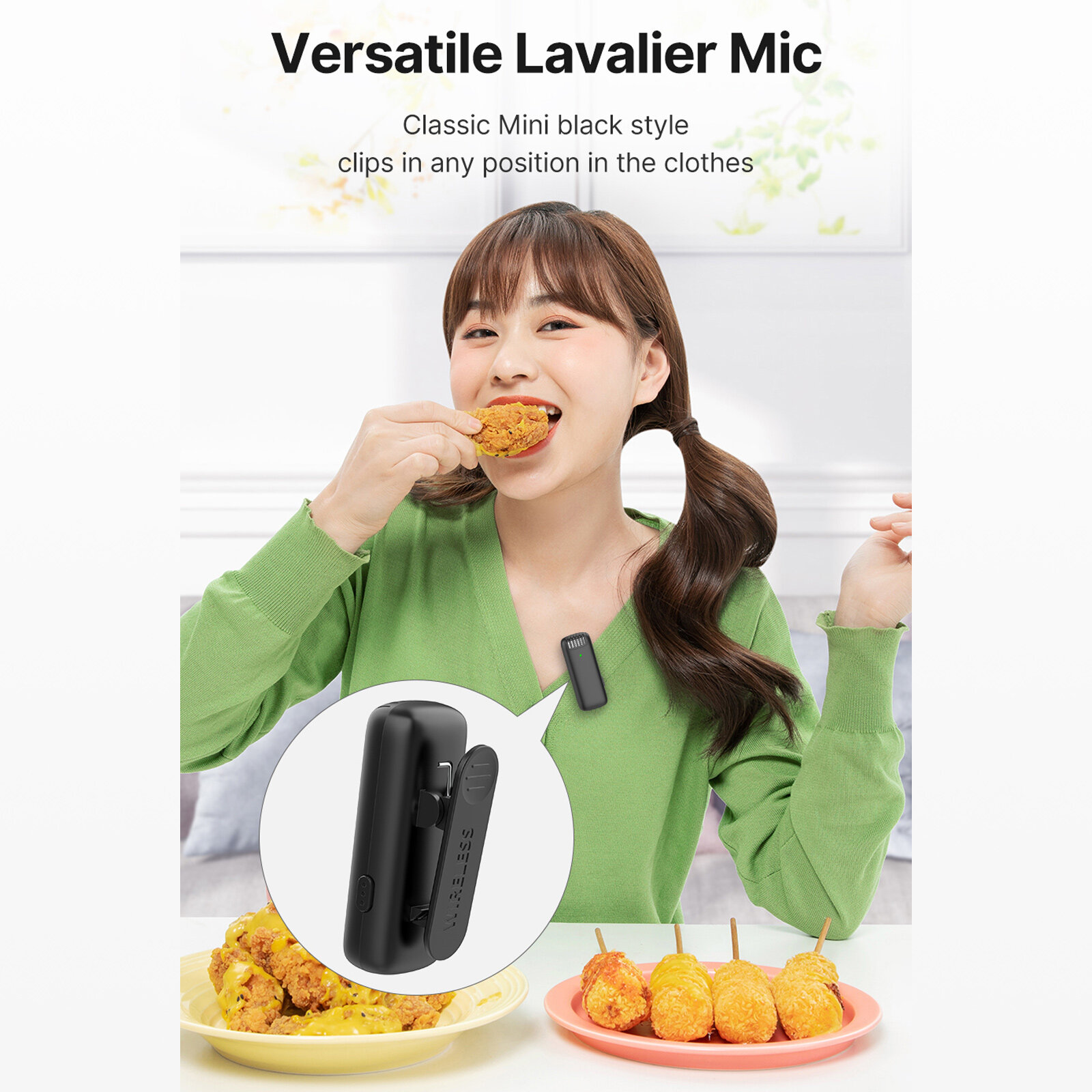 【Omni-directional Condenser Microphone】Adopts omni-directional condenser microphone, 360° surround sound pickup, better spatial sense; classic mini black style design, with a backside clip, can be fixed to your collar easily.