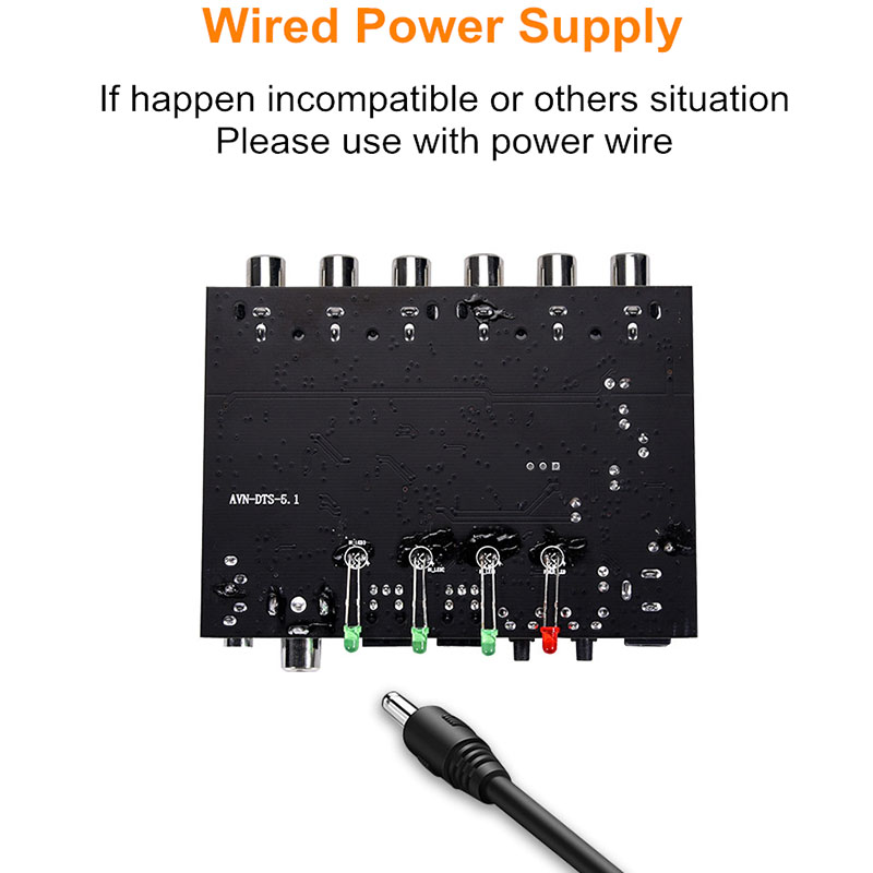Plug And play No Delay: Support Coaxial/Optical audio directly to 5.1 RCA audio output, no delay. Wired power supply available, if happen incompatible or other situation, please use with power wire.