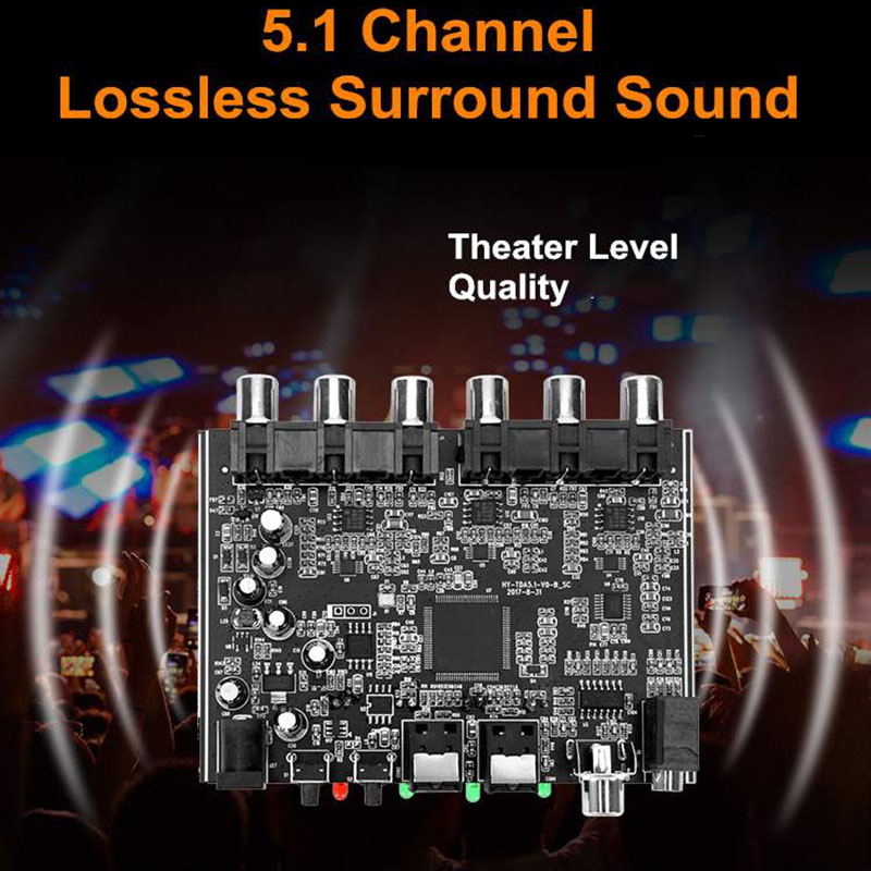 5.1 Audio Decoder: 5.1CH audio decoder can transfer audio from Optical/Coaxial/Other Channel into 5.1 independent sound track(6 Channel), and output through RCA amplifier with stereo sound.