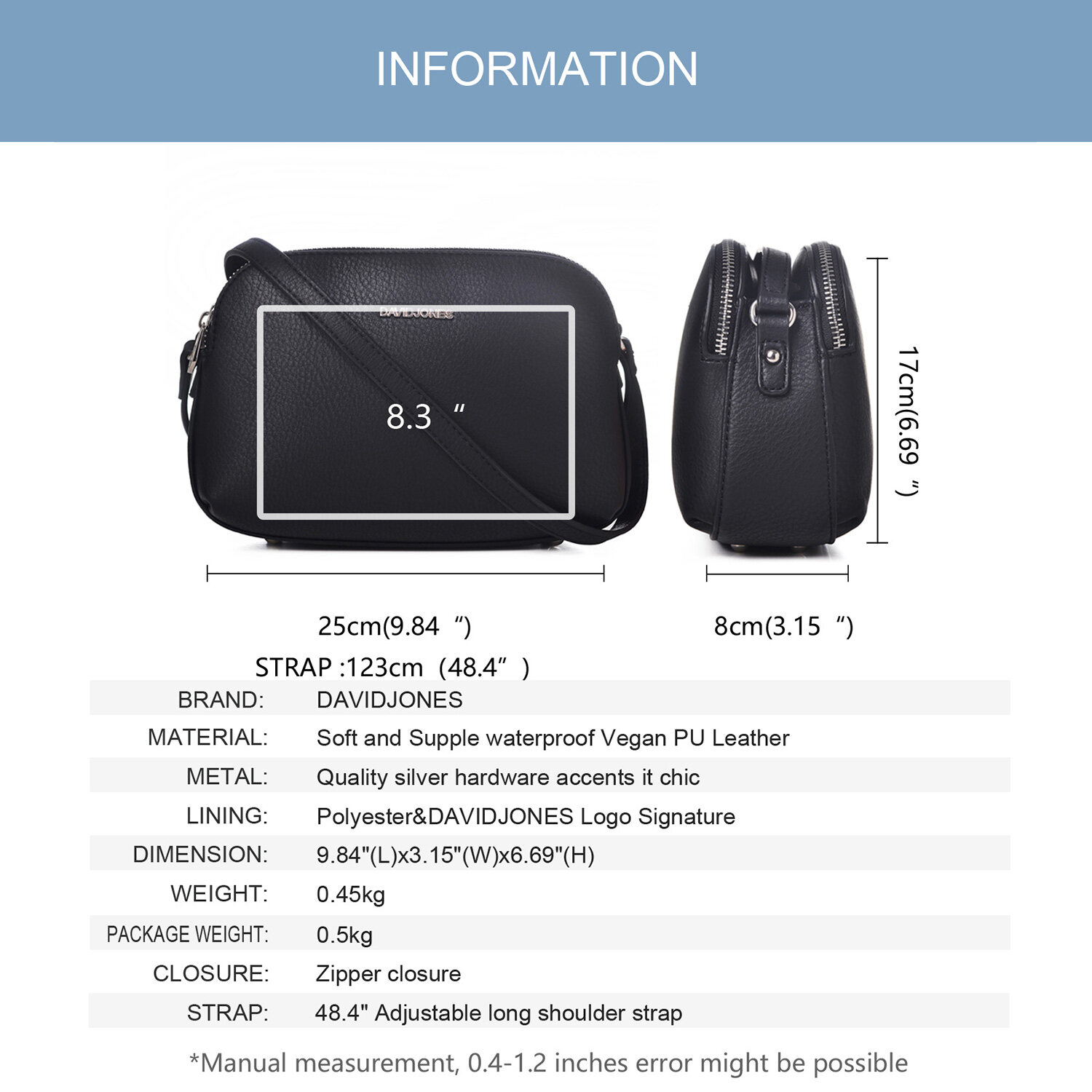 Long shoulder strap lengths: 123cm