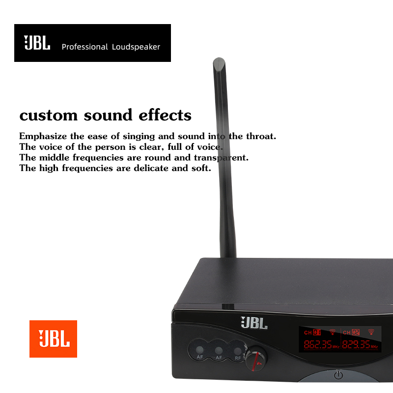 Wireless Microphone Floating Microphone Wireless Microphone System JBL_ Legendary Performance SPECIFICATION / FEATURE = Can be used at a distance of 100 meters = Wireless Microphone Floating Mic = Wireless Microphone System == Legendary Performance