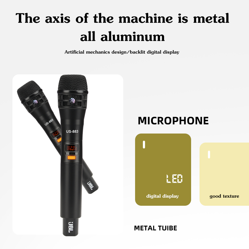 Wireless Microphone Floating Microphone Wireless Microphone System JBL_ Legendary Performance SPECIFICATION / FEATURE = Can be used at a distance of 100 meters = Wireless Microphone Floating Mic = Wireless Microphone System == Legendary Performance